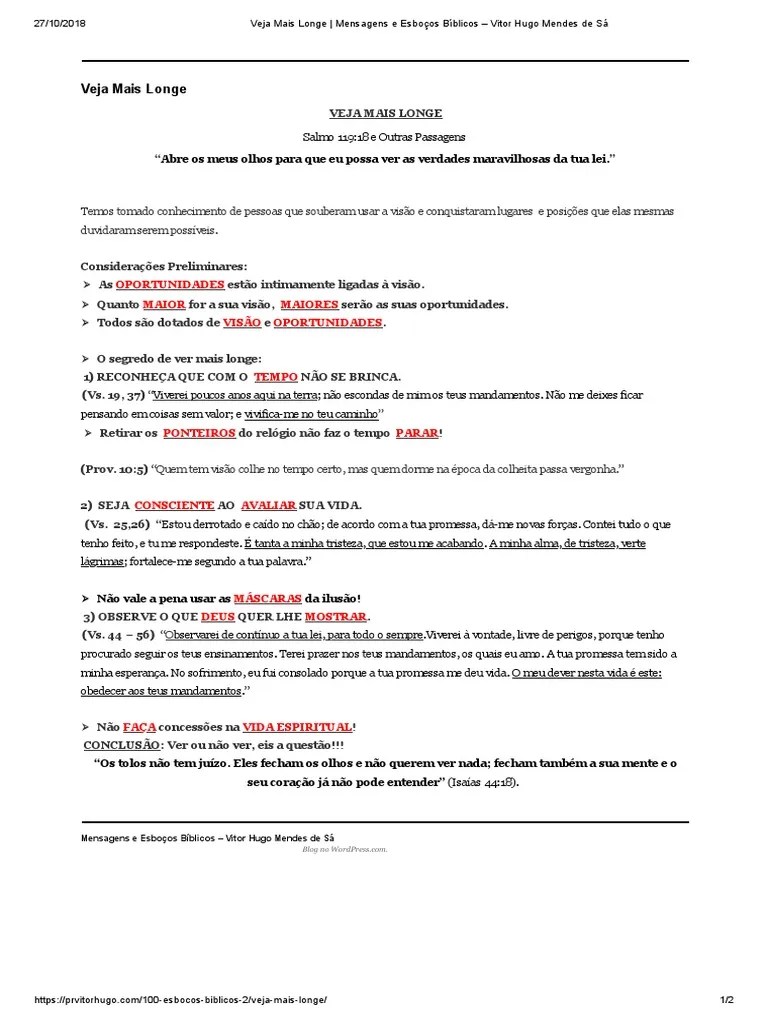 15/09/2018 · isaías 26:3,4 esta é uma promessa fantástica da palavra de deus!. 1 sem esperança, falsa esperança, verdadeira esperança tito 2:13 2 10 características das igrejas que crescem mateus 28:19,20 3 2.. Ajuda na preparação, forçando a concentração, pois a pregação e reflexão bíblica requer uma preparação espiritual e técnica, inclusive escola bíblica dominical.desse modo o pastor, pregador, presbítero ou líder poderá se dedicar mais a palavra.